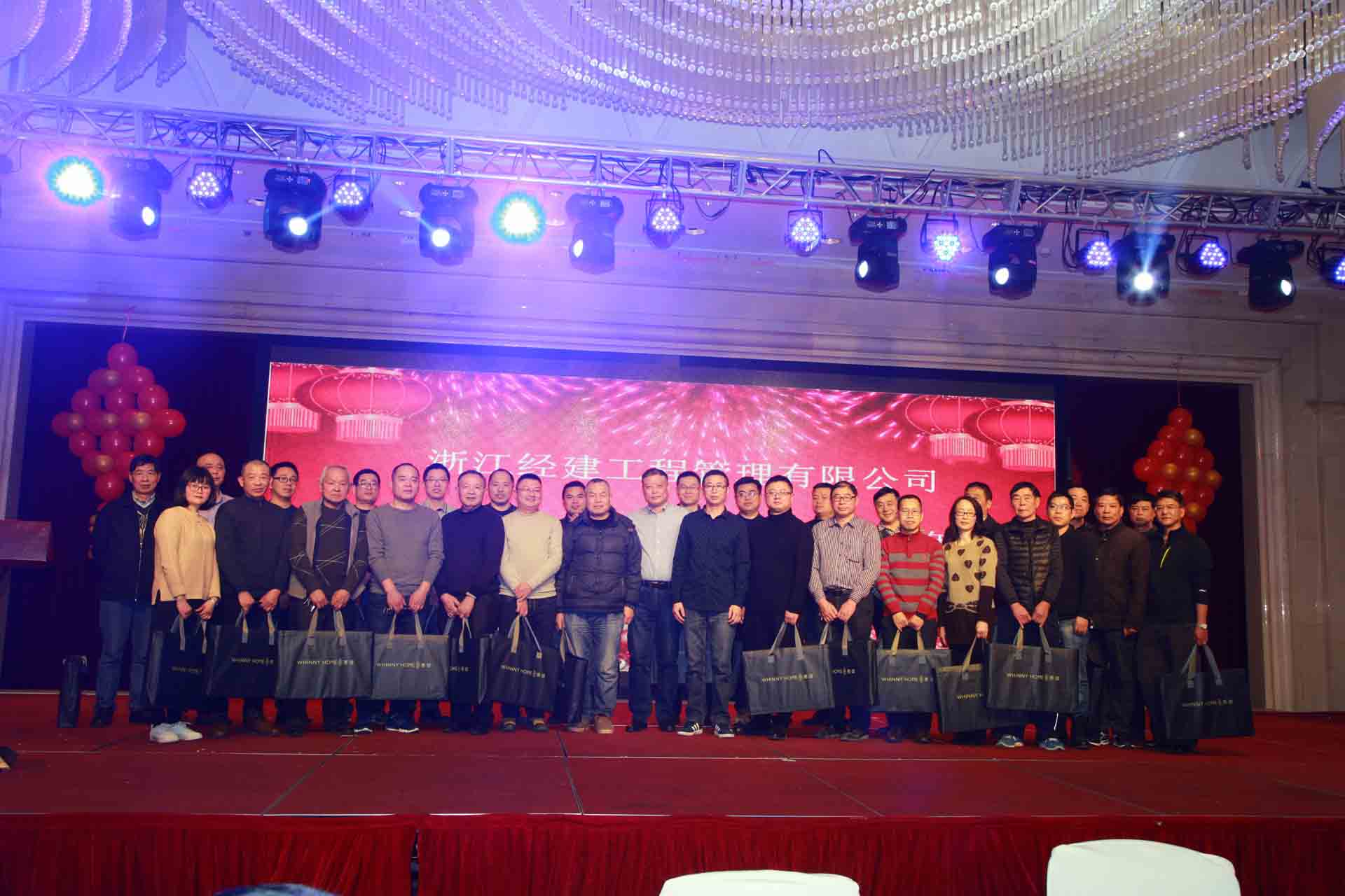 新年甫至,紫氣東來(lái),萬(wàn)象更新,2018年2月8日下午,浙江經(jīng)建工程管理有限公司2017年度總結(jié)表彰大會(huì)暨公司20周年慶典,在嘉興豪仕登大酒店三樓豪仕登廳舉行,公司領(lǐng)導(dǎo)和全體員工、市外項(xiàng)目部(分公司)代表以及已經(jīng)離開(kāi)公司工作的9位老同志代表等參加了此次活動(dòng),與會(huì)人數(shù)達(dá)260多人。