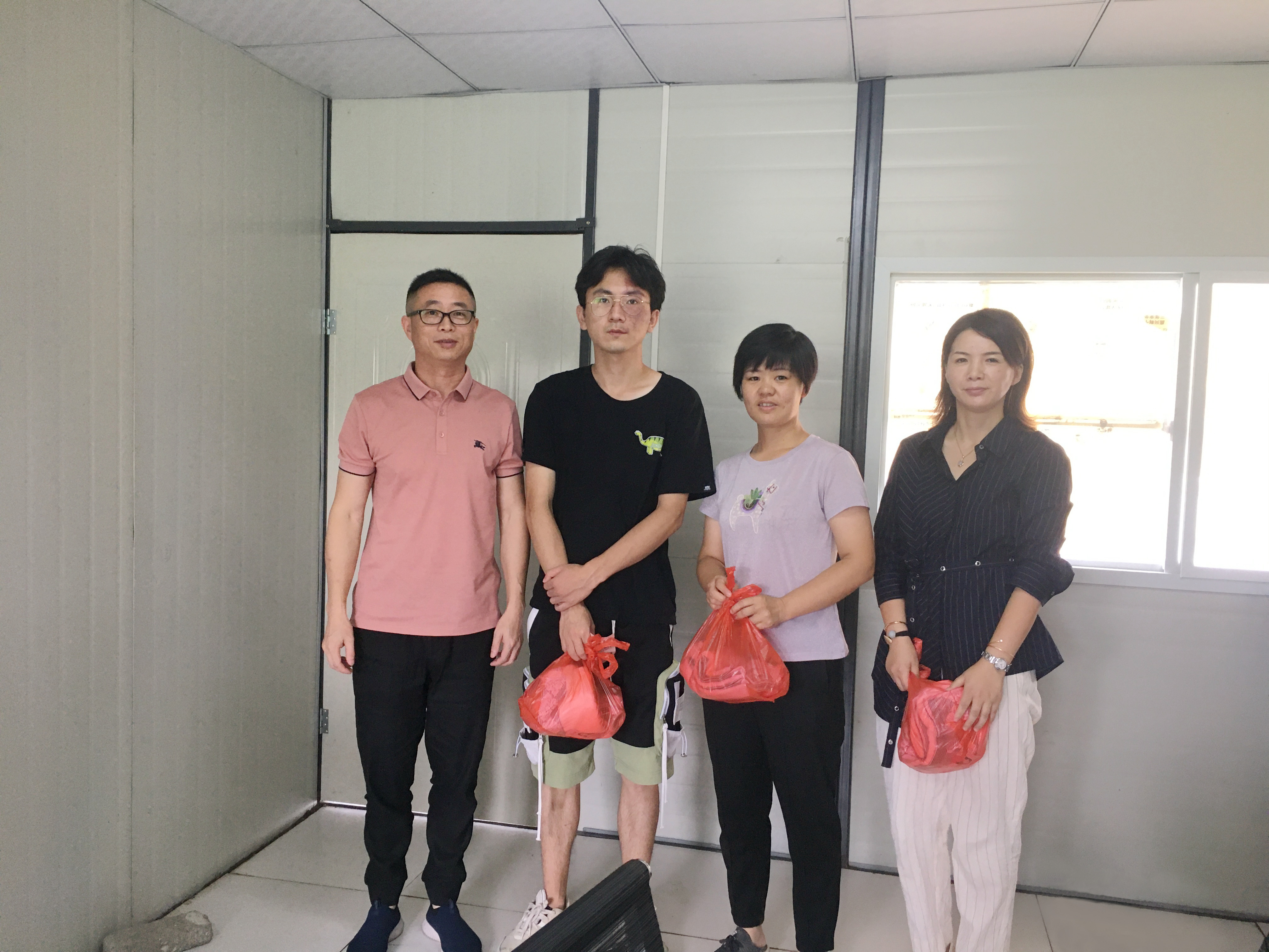 領(lǐng)導(dǎo)們把防暑降溫物品一一交到每個員工的手中,感謝大家在高溫下堅守崗位、默默奉獻(xiàn),并對他們的辛勤付出表示感謝和肯定。現(xiàn)場員工們也紛紛表示一定克服困難,做好防暑措施,確?,F(xiàn)場管理質(zhì)量。