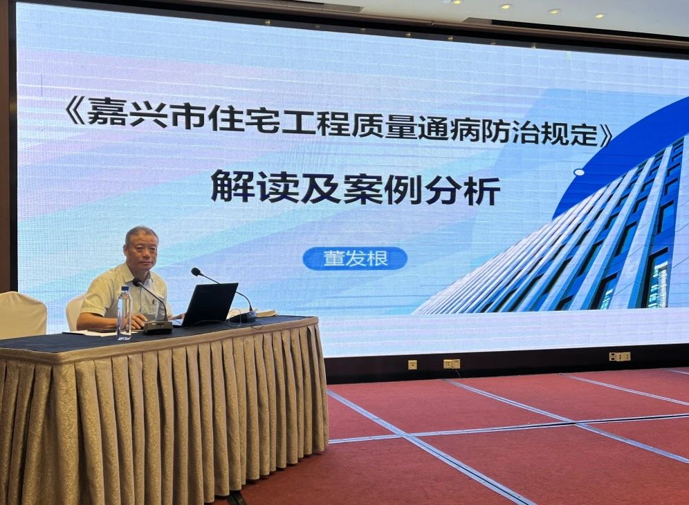 第二部分由董事長董發(fā)根針對(duì)《嘉興市住宅工程質(zhì)量通病防治規(guī)定》進(jìn)行詳細(xì)解讀和闡述,董總從行業(yè)現(xiàn)狀入手,針對(duì)外墻滲漏、外墻脫落、門窗滲漏、屋面滲漏、地面裂縫、地基變形等六個(gè)常見質(zhì)量通病,進(jìn)行了深入的講解。接著,董總對(duì)照規(guī)范標(biāo)準(zhǔn),直面現(xiàn)場(chǎng)檢查中發(fā)現(xiàn)的問題,剖析產(chǎn)生質(zhì)量通病的原因,總結(jié)實(shí)體結(jié)構(gòu)質(zhì)量通病防治經(jīng)驗(yàn),并就關(guān)鍵環(huán)節(jié)的一些注意事項(xiàng)和應(yīng)對(duì)策略做了全面的分享。
