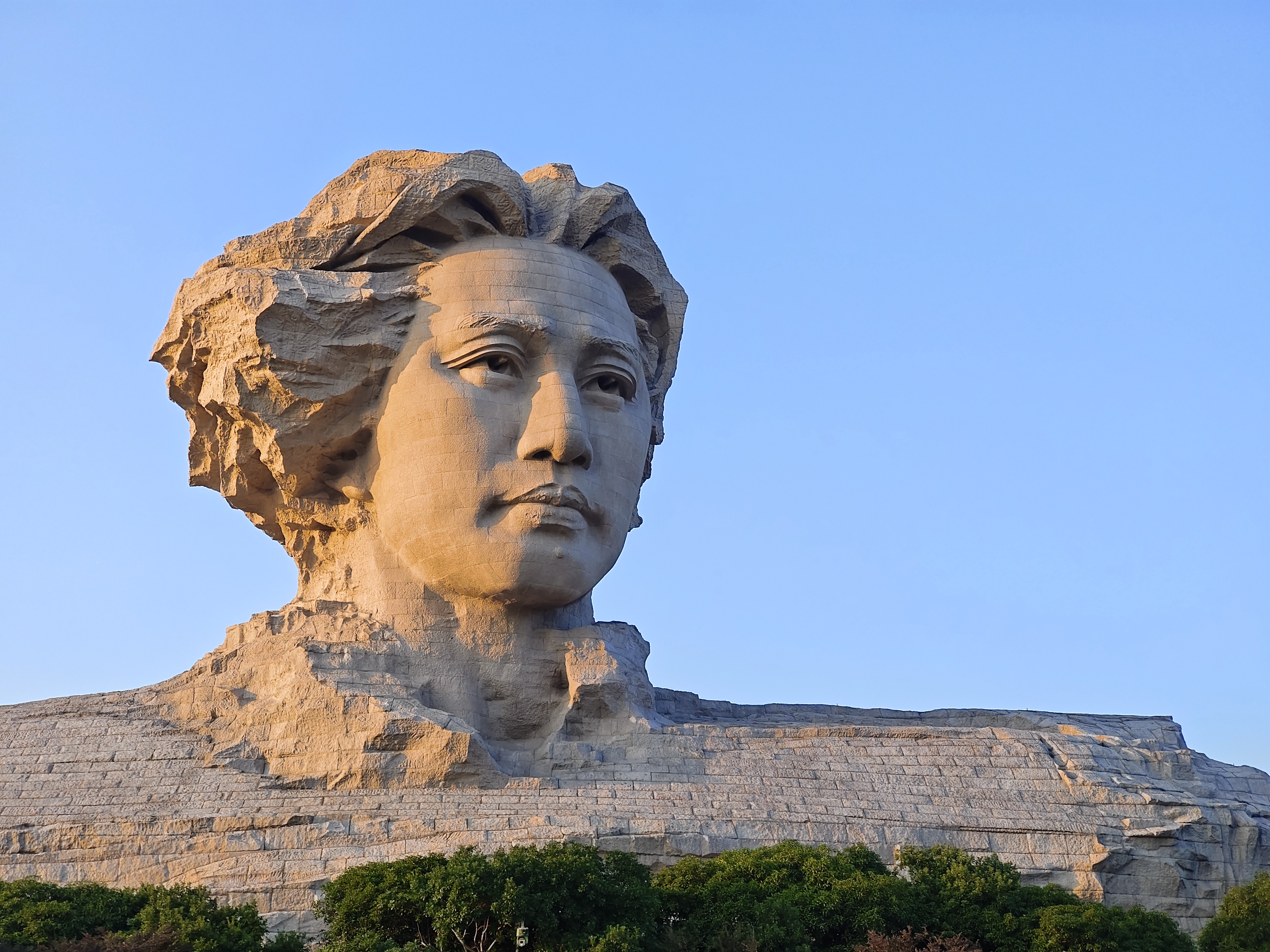 “獨立寒秋,湘江北去,橘子洲頭。”毛主席在《沁園春·長沙》將橘子洲頭的景色描繪得波瀾壯闊。結(jié)束博物院的參觀后,我們馬不停蹄地前往橘子洲頭參觀毛澤東青年藝術(shù)雕塑。坐著游覽車到達(dá)景點時,已經(jīng)隱約能看到雕塑的輪廓,再往里走,當(dāng)看到雕塑的全貌時,還是被映入眼簾的景象所震撼,眼前出現(xiàn)的是青年時期意氣風(fēng)發(fā)的主席形象,他用他那炯炯有神的目光眺望著遠(yuǎn)方。通過導(dǎo)游的講解我們了解到這座雕像的設(shè)計尺寸大有深意。這座雕塑高32米,寓意著主席32歲來到此地,長83米,寓意主席享年83歲,寬41米,寓意主席執(zhí)政41年。大家紛紛拍照留念,緬懷毛主席的豐功偉績。