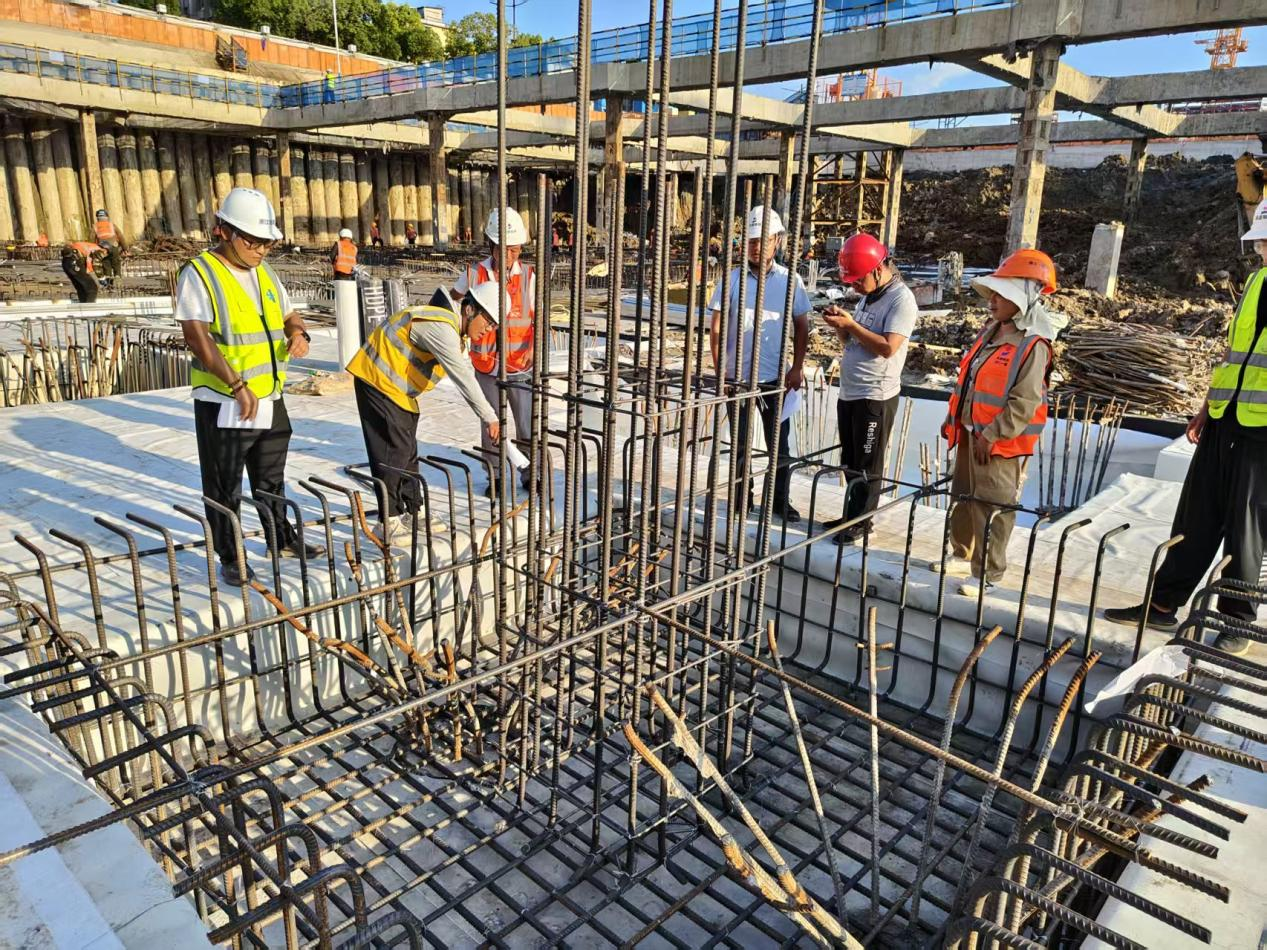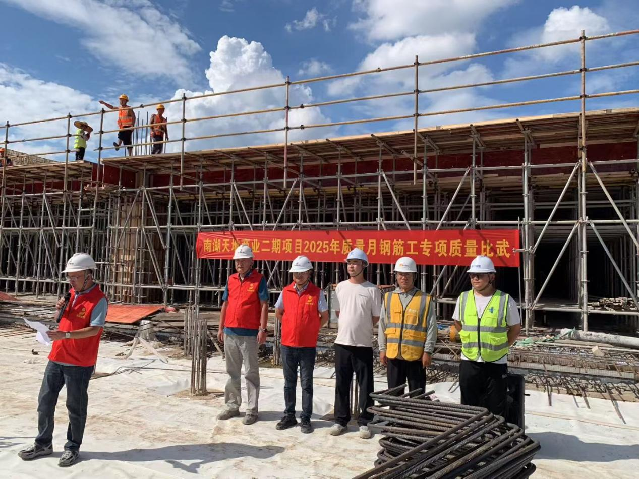 為響應(yīng)2025年全國(guó) “質(zhì)量月” 號(hào)召,加強(qiáng)黨建對(duì)質(zhì)量工作的引領(lǐng)作用,切實(shí)落實(shí)《混凝土結(jié)構(gòu)工程施工質(zhì)量驗(yàn)收規(guī)范》要求,將鋼筋工程質(zhì)量管控貫穿施工全流程。9月25日下午,南湖天地商業(yè)二期項(xiàng)目部在項(xiàng)目5區(qū)塊承臺(tái)模擬綁扎區(qū),成功舉辦 “精軋鋼筋尺寸 密扎質(zhì)量根基——鋼筋工技能比武筑精品工程” 專(zhuān)項(xiàng)質(zhì)量比武活動(dòng),以黨建引領(lǐng)質(zhì)量,以技能競(jìng)技助推項(xiàng)目主體結(jié)構(gòu)質(zhì)量的提升,為商業(yè)綜合體建設(shè)筑牢品質(zhì)基石。